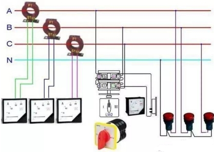 電流互感器是二次繞組在短路情況下作業的變壓器,用來把高壓或低壓體系的大電流變換成低壓體系的小電流,以供檢測儀表、自動操控信號以及繼電維護之用。二次側的額定電流為5A(或1A),故所接的電流表量程為5A(或1A)。