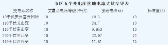 高壓試驗班與河北旭輝電氣有限公司對我局市區五個變電所的測量作用標明:五個變電所中有四個站的接地電流超支(依據中華人民共和國電力行業標準《溝通電氣設備的過電壓維護和絕緣協作》DL/T630-1997中的規則,在中性點不接地體系中當接地電流大于10A時,應選用中性點經消弧線圈接地的方法),測量作用詳見下表: