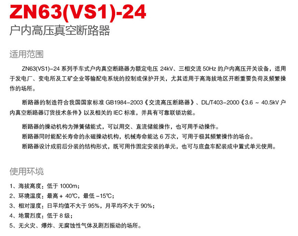 ZN63(VS1)-24戶內高壓真空斷路器